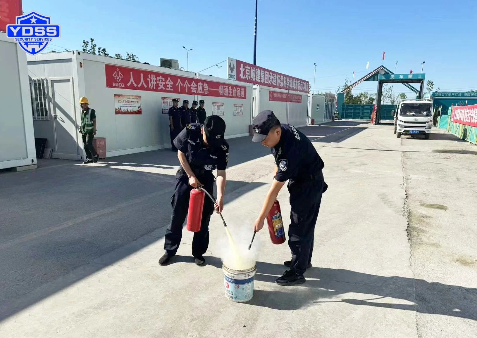 2024年6月北京銀盾保安服務(wù)有限公司駐北京城建集團(tuán)懷柔科學(xué)城城市客廳C項(xiàng)目、B項(xiàng)目、實(shí)驗(yàn)室項(xiàng)目和張家灣車輛段項(xiàng)目、歇甲村項(xiàng)目、京東方項(xiàng)目保安隊(duì)以“防風(fēng)險(xiǎn)、除隱患、遏事故”為主題,開(kāi)展“安全生產(chǎn)月”消防演練活動(dòng)。